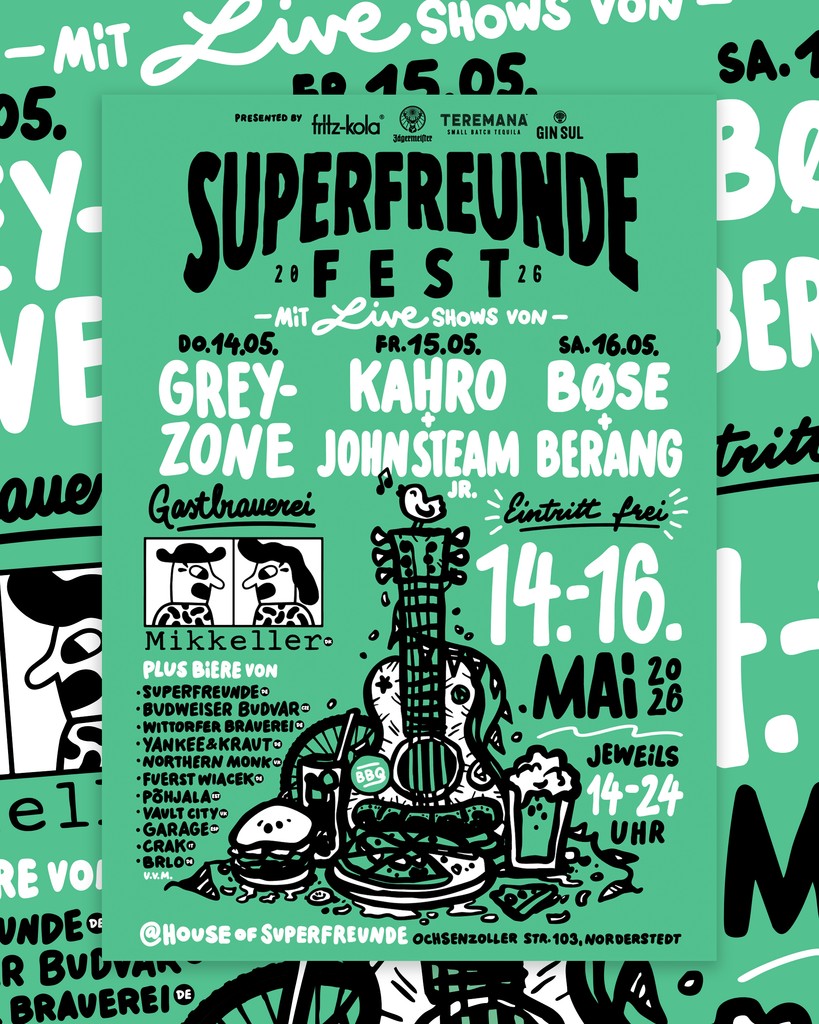 Das SUPERFREUNDE Fest 2026 findet am DO 14.05., FR 15.05. & SA 16.05. im HOUSE OF SUPERFREUNDE statt.